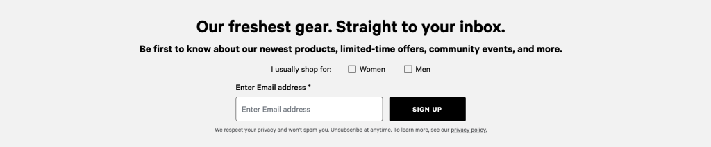 1、Lululemon新用户9折优惠码。拉到页面最低下,新用户注册email立刻享受9折优惠码。